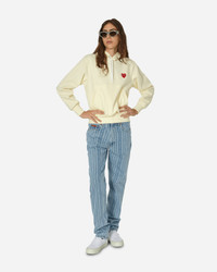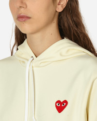 Comme des Garçons PLAY Small Heart Hooded Sweatshirt Ivory The iconic Comme Des Garçons PLAY Heart has been created as an evergreen staple, suitable for every season and needs. You can't miss out on this fashion timeless item. - 100% Polyester - Drawstring Hood - Heart Logo Patch at Chest - Kangaroo Pocket - Ribbed Cuffs and Hem - Made in Japan - Style Code: P1T173 2 SIZE & FIT Measures (Size M): 52cm Shoulders, 58cm Chest, 63cm Sleeve, 69cm Length, 46cm Hem. Model is 5ft 5in/1.70m with 30"/78cm chest and wears size M.