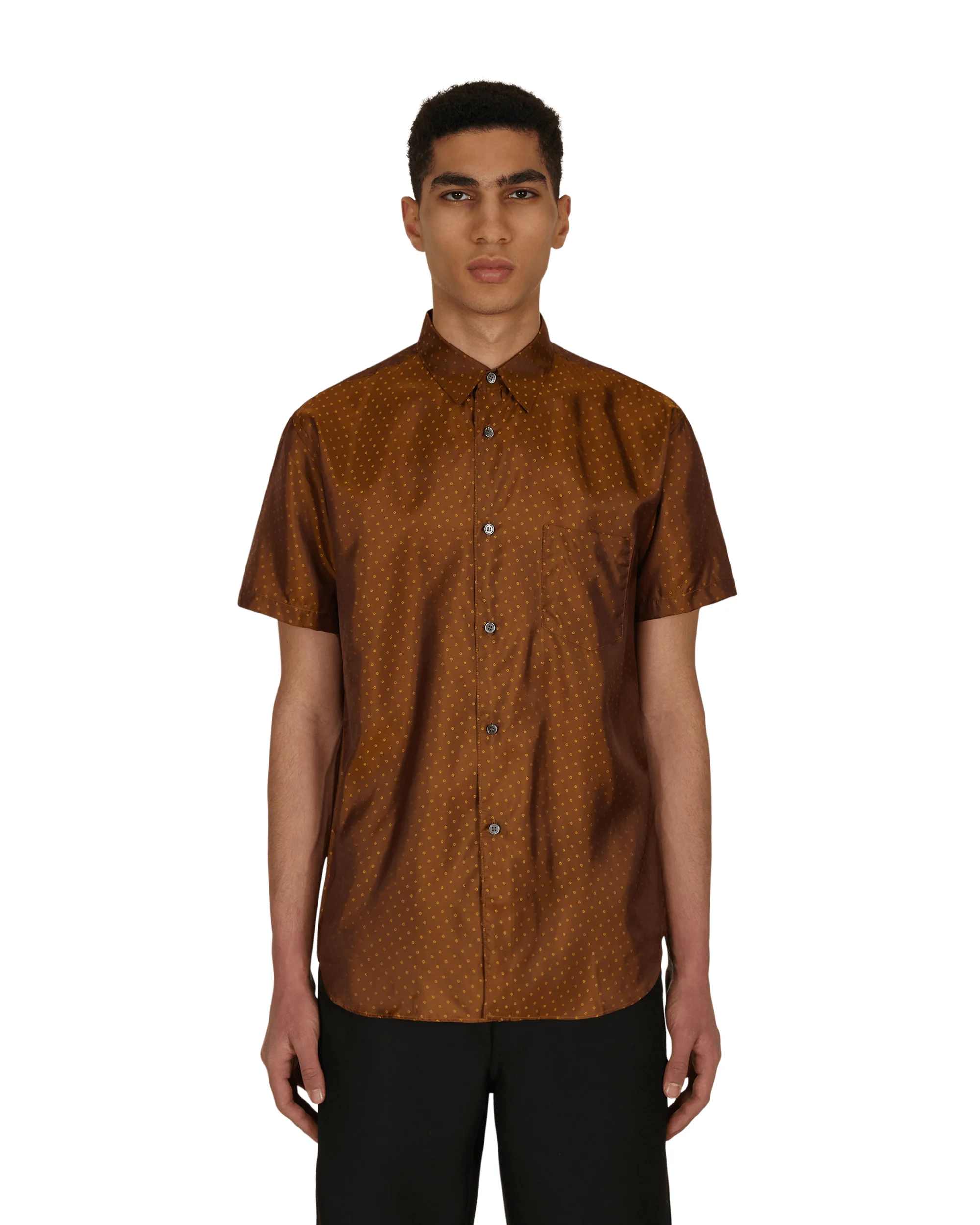 Comme Des Garçons Shirt Woven Khaki Shirts Longsleeve - 100% Cupro - All-Over Dot Pattern - Classic Collar - Button Closure - Chest Pocket - Shirttail Hem - Made in France - Style Code: FG-B078-SS21 3 SIZE & FIT Model is 6ft 1in/1.86m with 35"/90cm chest and wears size M. Measures (Size M): 49cm Shoulders, 53cm Chest, 21cm Sleeve, 78cm Length, 56cm Hem.
