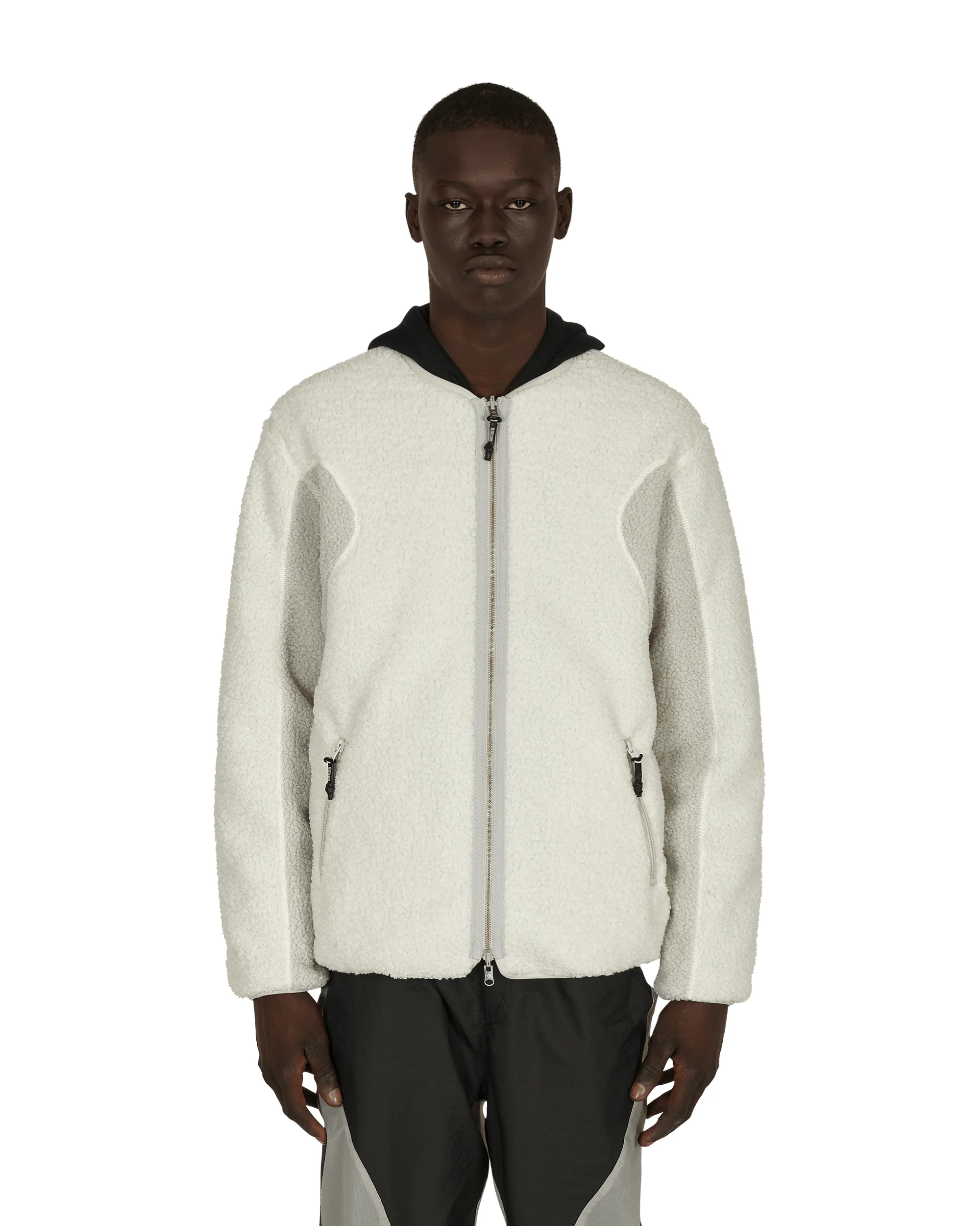 Converse x Slam Jam Sherpa Reversible Jacket Egret This limited-edition reversible jacket combines two signature materials of outerwear: Sherpa fleece and nylon crimp ripstop that can be styled two ways. - 100% Polyester / 100% Nylon - Sherpa Fleece and Crimp Ripstop Fabric - Reversible - Two-Way Zip Closure - One Zip Pocket at Chest - Embroidered Branding - Two Zip Pockets at Front - Transulcent Ripstop Accents - Co-Branded Tyvek Label at Front - Elastic Trims - Compatible and can be Layered with the Full-Zip Hoodie - Style Code: 10022283-A01 EGR SIZE & FIT Model is 6ft 1in/1.85m with 34''/86cm chest and wears size M. Measures (Size M): 52cm Shoulders, 59cm Chest, 65cm Sleeve, 70cm Length, 50cm Hem.