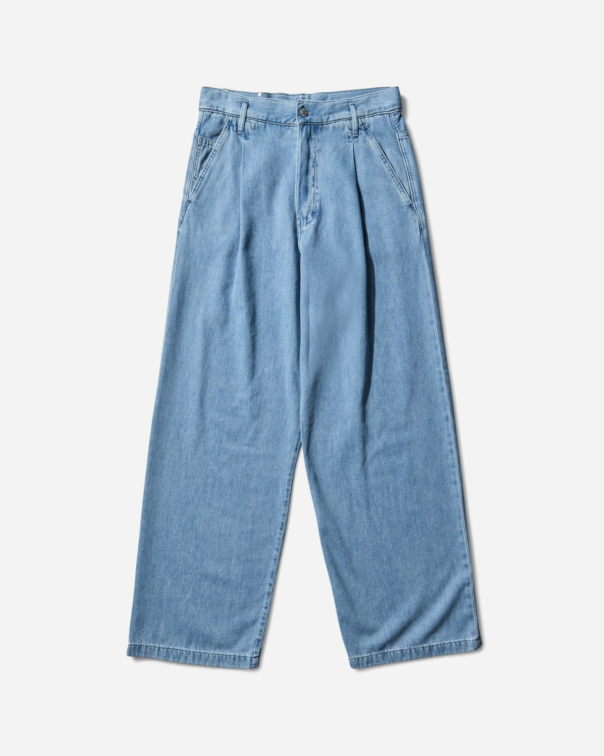 Dries Van Noten Pleated Jeans Light Blue Dries Van Noten Men's Autumn Winter Collection: When the elegance of another era catches up to the current moment, various allusions resonate to striking effect. Capturing how contrasts turn complementary, and how artistic influences can alter masculine archetypes. High rise wide leg denim pants with pleats. - 100% Cotton - Loose Fit - High Rise - Button Closure - Zip-Fly - Pleats at Front - Five-Pocket Construction - Embossed Leather Patch - Style Code: 252-020923-2381 514