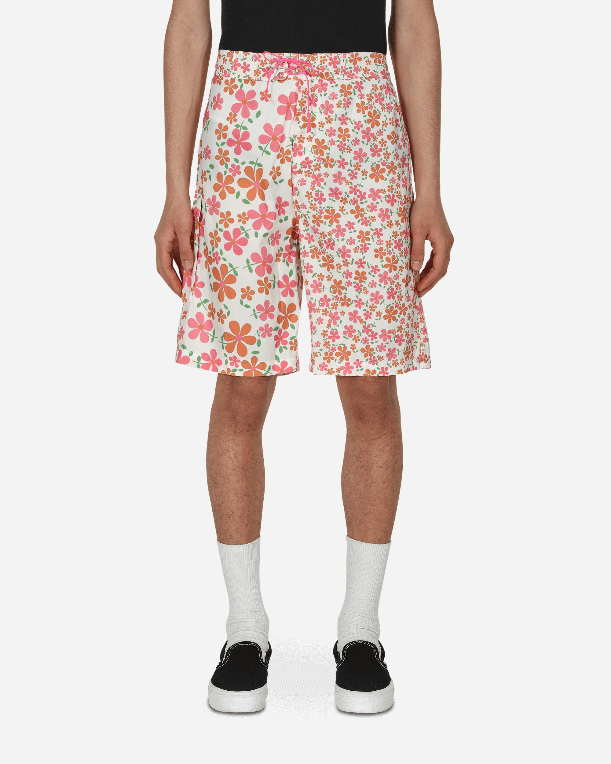 ERL Floral Swim Shorts Floral - 100% Polyester - All-Over Floral Patter - Partially Elasticated Drawstring Waistband - Style Code: ERL04UW12 1 SIZE & FIT Model is 6ft 1in/1.86m with a 28"/72cm waist and wears size M. Measures (Size M): 36cm Waist, 28cm Rise, 55cm Outseam, 25cm Inseam, 30cm Ankle.