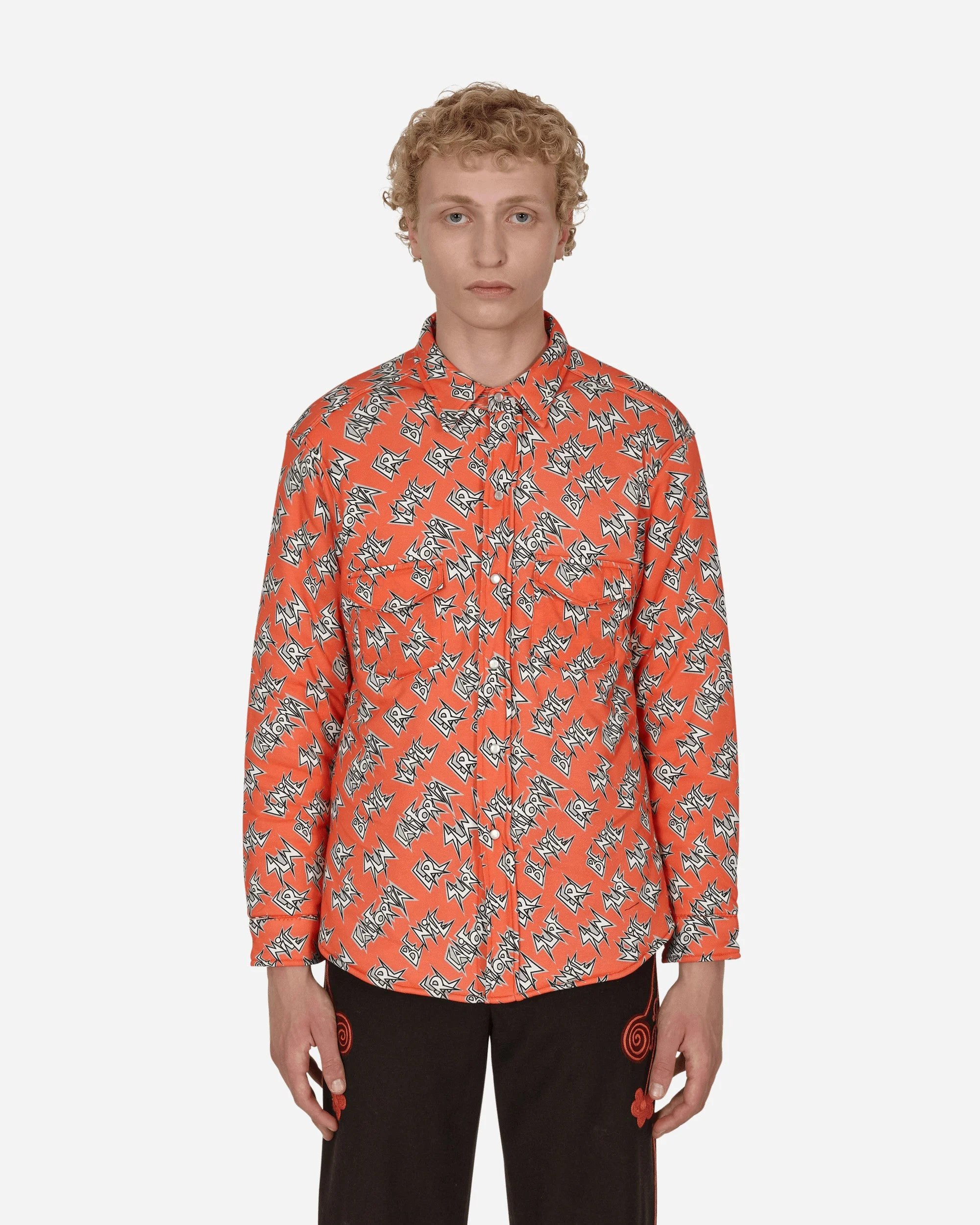 ERL Padded Cotton Overshirt Pink - 100% Cotton - Padded Construction - All-Over Logo Pattern - Spread Collar - Snap-Button Closure - Two Flap Chest Pockets - Single-Button Cuffs - Curved Hem - Style Code: ERL04B009 1 SIZE & FIT Model is 6ft 1in/1.86m with 32"/90cm chest and wears size XL. Measures (Size XL): 46cm Shoulders, 52cm Chest, 60cm Sleeve, 72cm Length, 58cm Hem.