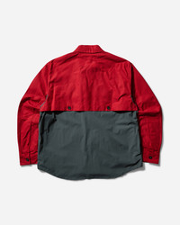 GR10K Field Overshirt Scarlet Red From GR10K's "Nine pounds of dead landscape" collection, this waxed cotton overshirt with contrasting technical fluid features stiff top with collar that buttons down to the chest, contrast with a fluid fabric body that zippers up. - 90% Cotton, 10% Elastane - Loose Fit - Waxed Cotton Fabric - Classic Collar - Button Placket - Zip Closure - Two Front Flap Pockets - Polartec® Label - Elasticated Cuffs - Shaped Back - Made in Italy - Style Code: BG134090DE 28