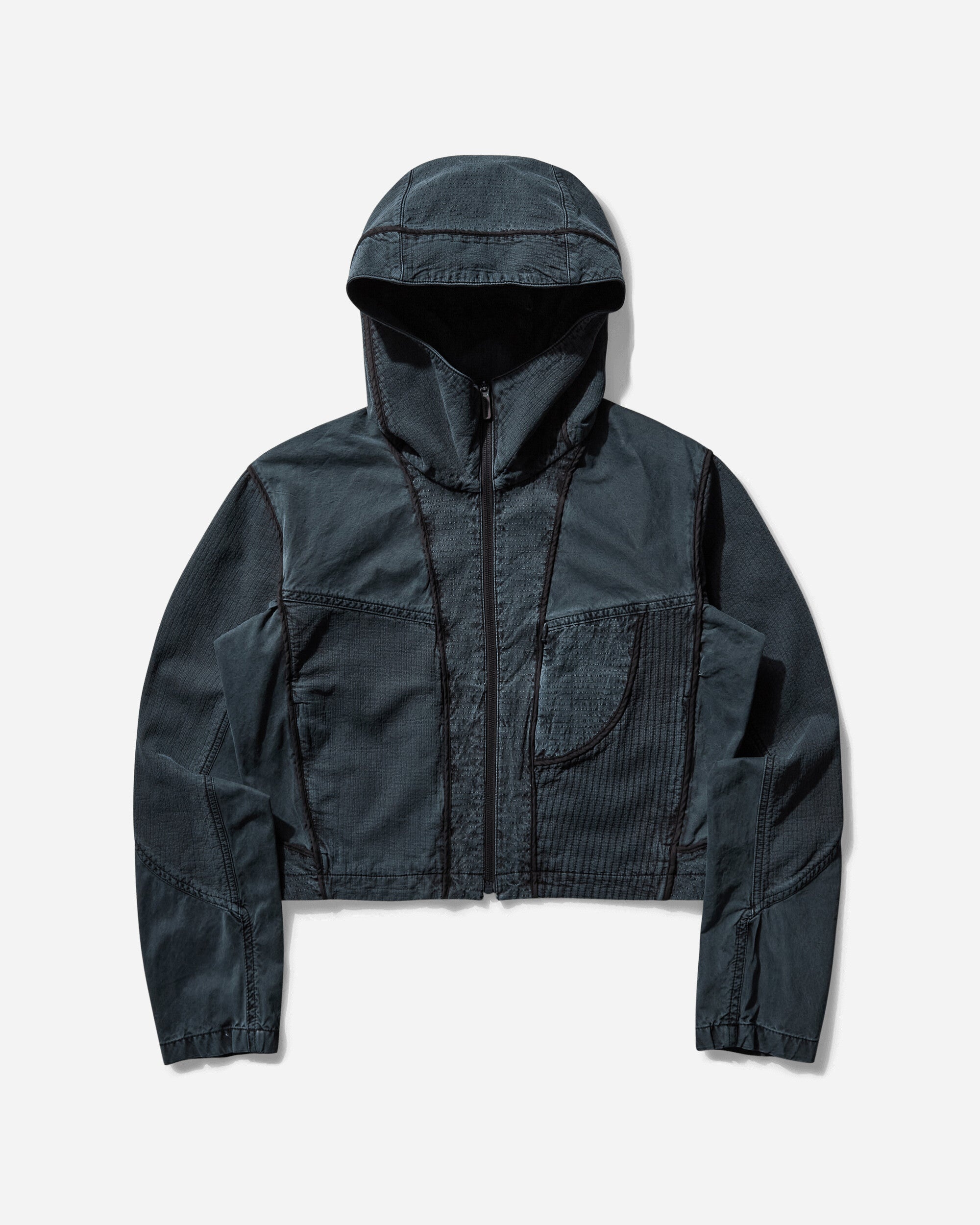 HYEIN SEO Dyed Crop Jacket Moonscape Cropped jacket with hidden zip pockets and patchwork color blocking. - 98% Cotton, 2% Polyurethane - Cropped Fit - Panelled Construction - Zip Closure - Hidden Zip Pockets - Made in South Korea - Style Code: PS25-JK7MS MOONSCAPE