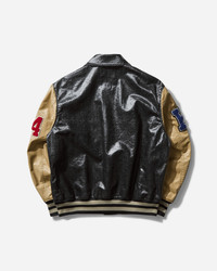 Hysteric Glamour HG Patch Varsity Jacket Black This stadium jacket features a post-dyed coated fabric that mimics the look of aged leather, while remaining lightweight and unlined. It’s wind- and water-resistant with slight stretch. Embroidered patches on chest and sleeves complete its classic athletic look. - 72% Rayon, 26% Polyester, 2% Polyhuretane - Post-Dyed Coated Fabric - Regular Fit - Classic Collar - Ribbed Cuffs and Hem - Snap-Button Closure - Two Front Pockets - Interior Pocket - Multiple Patches at Front and Sleeves - Made in Japan - Style Code: 02251AB09 96 SIZE & FIT Size Body Shoulder Chest Sleeve M 65cm 51.5cm 61.5cm 61cm L 66.5cm 53.5cm 64cm 62cm
