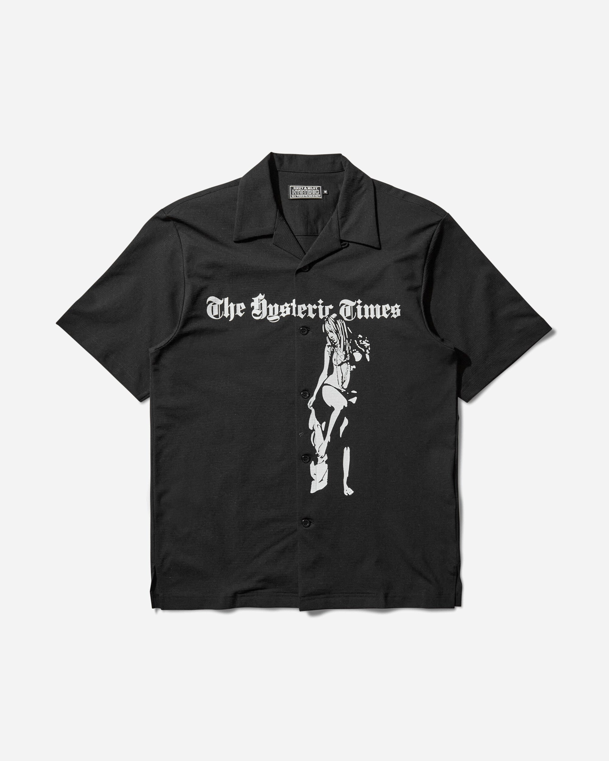 Hysteric Glamour Hysteric Times Shirt Black Hysteric Glamour is a Japanese brand known for its bold and provocative aesthetic, that combines elements of rock 'n' roll, pop culture, and contemporary art. The collections frequently feature vibrant prints, extravagant graphics, and unique details. The brand has gained significant popularity in the Japanese fashion scene and has also garnered an international following. - 100% Polyester - Relaxed Fit - Open Collar - Button Closure - Graphic Printed at Front - Made in Japan - Style Code: 02251CH04 96