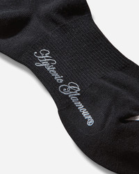 Hysteric Glamour Vixen Girl Sports Socks Black Hysteric Glamour is a Japanese brand known for its bold and provocative aesthetic, that combines elements of rock 'n' roll, pop culture, and contemporary art. The collections frequently feature vibrant prints, extravagant graphics, and unique details. The brand has gained significant popularity in the Japanese fashion scene and has also garnered an international following. - 56% Cotton, 24% Acrylic, 17% Nylon, 3% Polyurethane - Ribbed Cuffs - Jacquard Graphic - Made in Japan - Style Code: 01253QT01 96