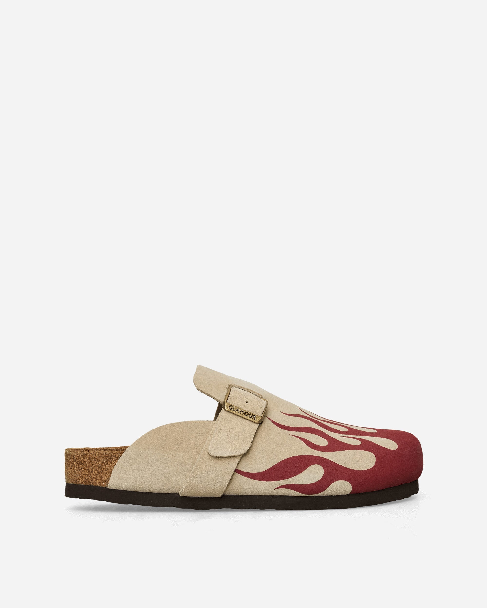 Hysteric Glamour Fire Pattern Sandals Beige Hysteric Glamour is a Japanese brand known for its bold and provocative aesthetic, that combines elements of rock 'n' roll, pop culture, and contemporary art. The collections frequently feature vibrant prints, extravagant graphics, and unique details. The brand has gained significant popularity in the Japanese fashion scene and has also garnered an international following. - Cowhide Upper - Fire Pattern - Adjustable Buckle - Cork Insole - EVA Midsole - Rubber Outsole - Style Code: 01251QS01 10