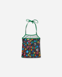 Hysteric Glamour SNS Addiction Pattern Halter Neck Top Black Made from a smooth, stretchy fabric the top features a striking all-over pattern design incorporating a cute magnet motif and evocative phrases. A cute patch designed to match the all-over pattern is placed on the left chest. - 100% Cotton - Cropped Fit - All-Over Printed Pattern - Halter Neck - Embroidered Patch - Made in Japan - Style Code: 01251CR02 99