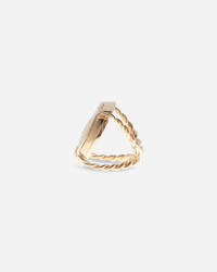 Jean Paul Gaultier Champagne Ring Gold Designed by the Jean Paul Gaultier studio, the Pre-Collection Fall 2025 built around the four elements - water, fire, earth, and air - each evoked through materiality, movement, and mood. This elemental force is channeled through Gaultier’s signature language: sculptural corsetry, precise tailoring, and optical trompe-l’œil illusions that blur the line between garment and fantasy. Gold-toned brass ring in the shape of a champagne cap. - 100% Brass - S = 54 - M = 58 - Made in Italy - Style Code: 2503WJW004X053 92