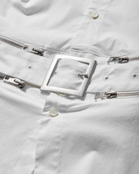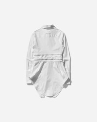 Jean Paul Gaultier Women's Belted Shirt White For its latest collection, Maison Jean Paul Gaultier celebrates the art of reinvention through hybrid evolutions of its legacy codes. White cotton poplin shirt with detachable belt and Jean Paul Gaultier logo detail below the bust. - 97% Cotton, 3% Elastane - Fitted Cut - Mid-Thigh Length - Classic Collar - Mother-of-Pearl Button Closure - Detachable Belt - Adjustable Cuffs with Metallic Buttons - Curved Hem - Style Code: 25-33-F-CH087I-C071 01