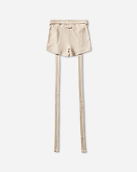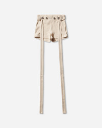 Jean Paul Gaultier Logo Patch Shorts Beige Inspired by the equestrian world, the Spring 2026 Pre-Collection balances polish with provocation. Structured silhouettes, tailored precision, and refined materials meet the free-spirited absurdity at the heart of Gaultier. It’s sophistication with a wink, elevated, bossy, and unapologetically playful. The collection celebrates control and freedom in equal measure: power dressing with attitude, elegance with edge. Beige ribbed cotton shorts with overalls-inspired buckles with Jean Paul Gaultier engraving, and Gaultier patch at the waist. - 100% Cotton - Tight Fit - Elasticated Waistband - Woven Logo Patch - Straps at Sides - Buttons with Jean Paul Gaultier Engraving - Style Code: 26-01-W-TR059-J014 63