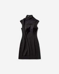 high-neck asymmetric mini dress