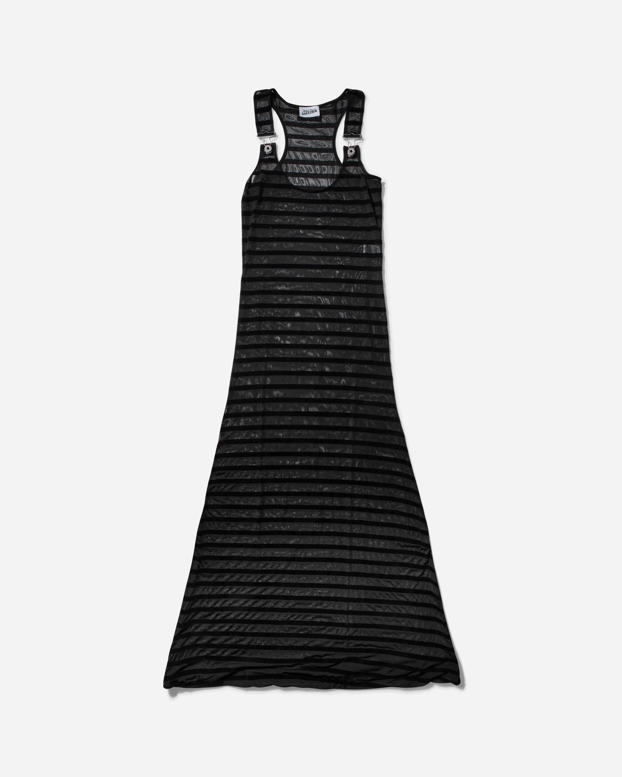 Jean Paul Gaultier Striped Mesh Long Dress Black / Black Jean Paul Gaultier unveils TRES GAULTIER #3 collection, the new Ready-to-Wear collection that celebrates Gaultier's characters and iconic motifs of the Maison. Long dress in black with striped pattern and metal-overalls inspired buckles. - 100% Polyamide - Striped Pattern - Regular Fit - Metal Overalls-Inspired Buckles - Made in Italy - Style Code: 2431FRO235-T567 0000