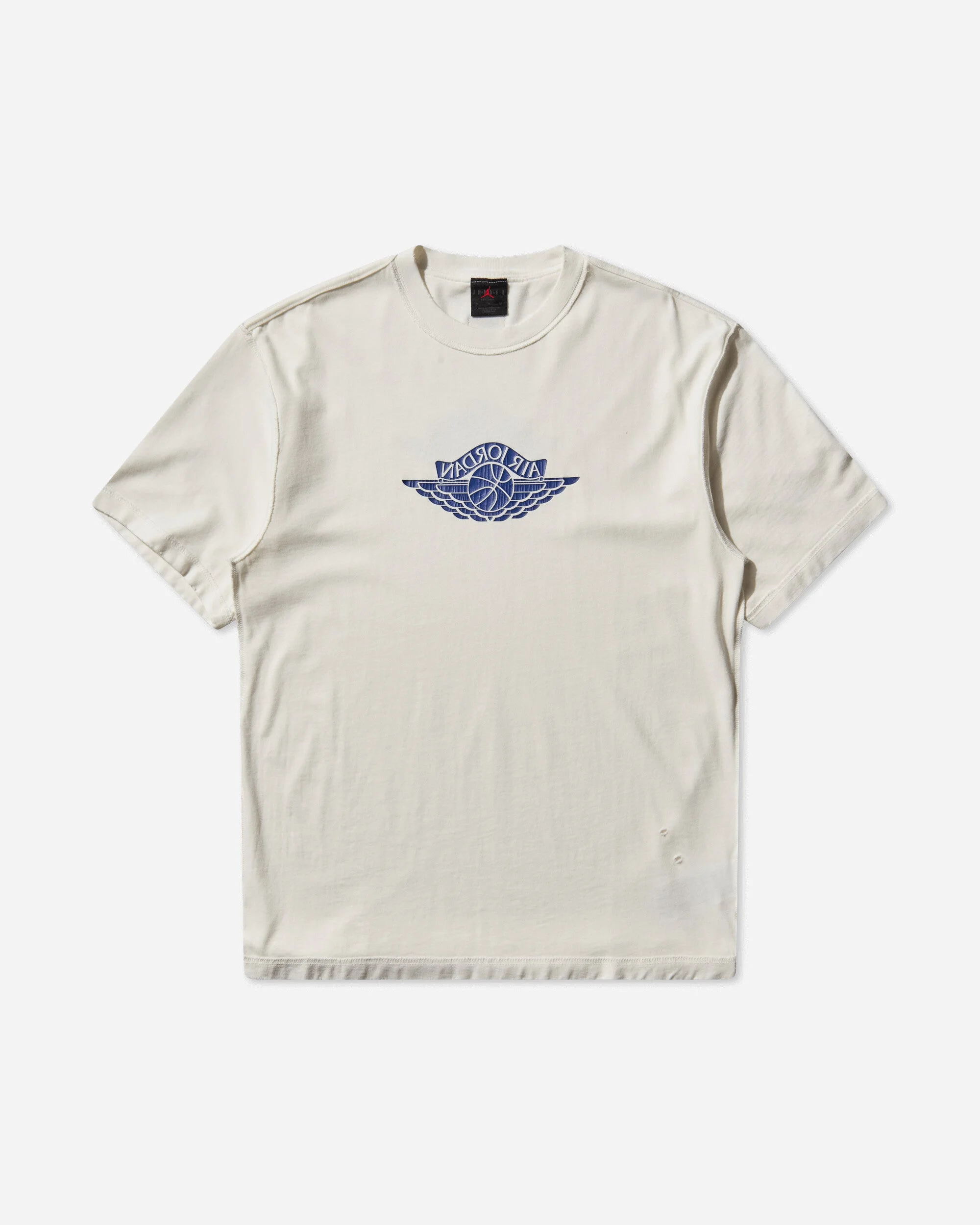 Nike Jordan Rare Air T-Shirt Sail / Deep Royal Made from heavyweight cotton, this structured short-sleeve tee pairs distressed details with an all-over wash for that perfectly worn-in look. - 100% Cotton - Regular Fit - Ribbed Collar - Printed Logo - Style Code: IB3130-133