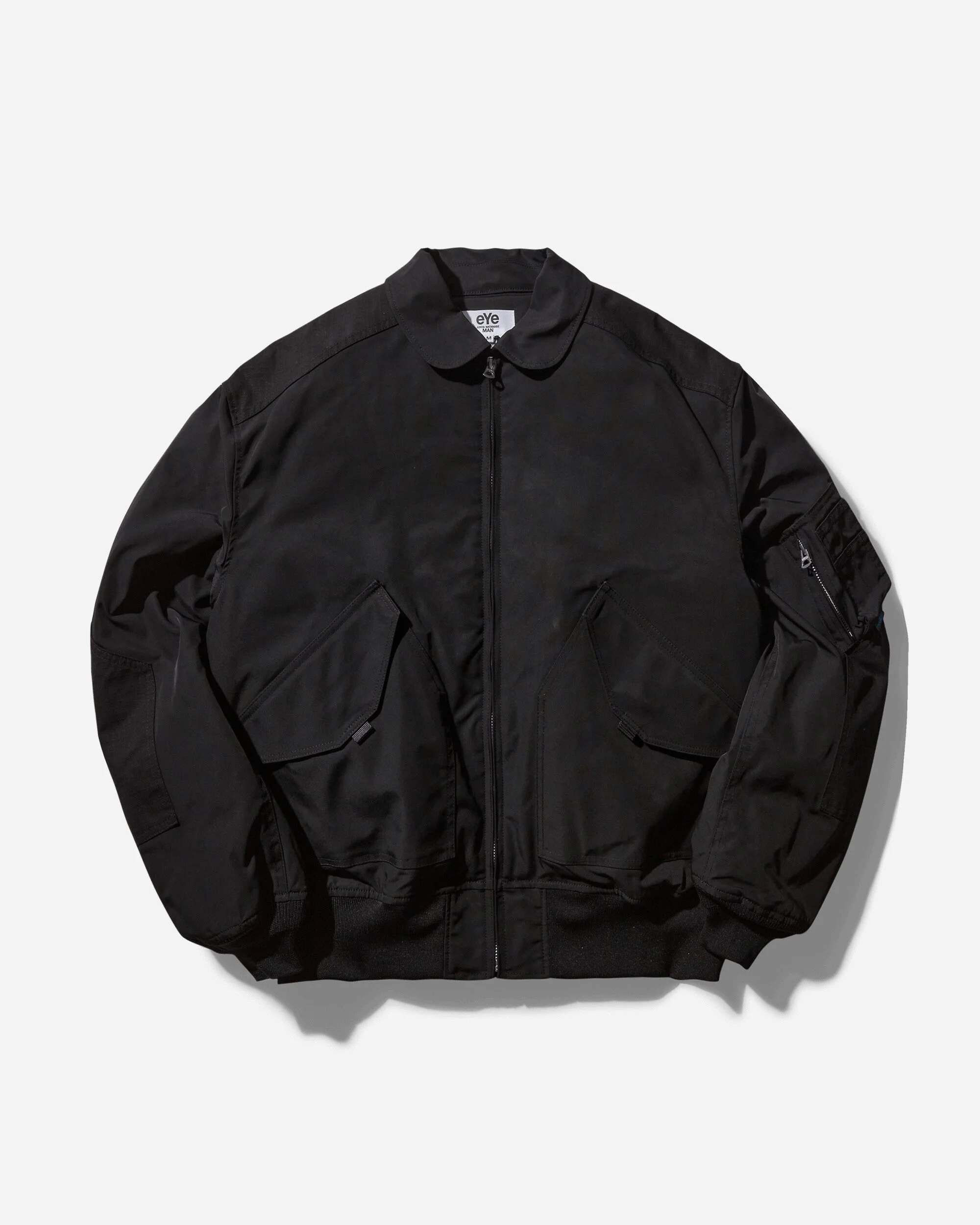 Junya Watanabe MAN x Karrimor Bag Jacket Black Taking your look from classic to iconic, this cutting-edge bomber jacket with detachable backpack combines Karrimor's outdoor and functional heritage with Junya Watanabe's experimental vision. - 100% Polyester - Spread Collar - Zip Closure - Taped Nylon Inserts - Two Front Flap Pockets - Utility Sleeve Pocket - Detachable Backpack - Embroidered Branding - Ribbed Cuffs and Hem - Made in Japan - Style Code: WN-J910-W24 1
