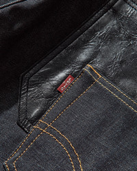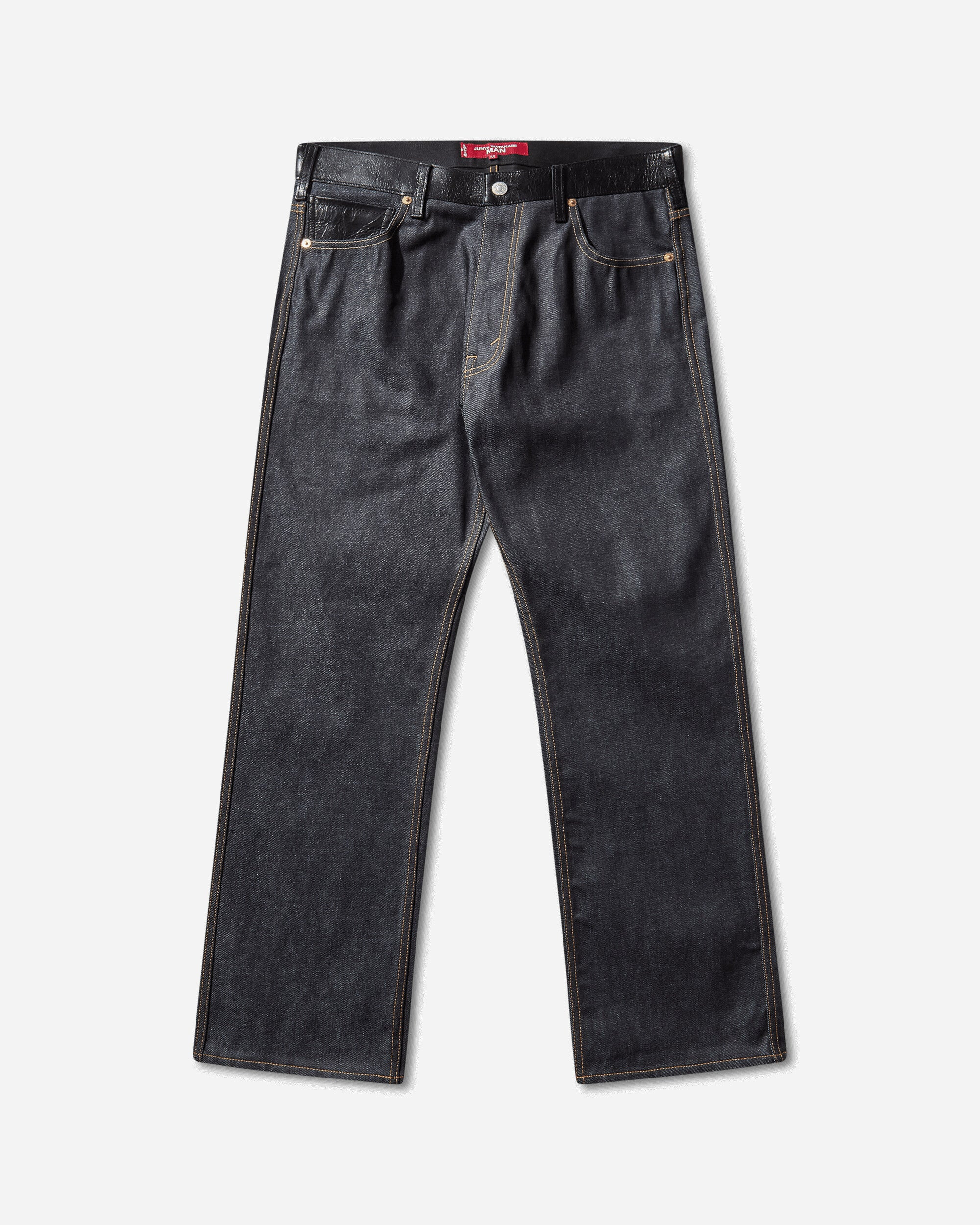 Junya Watanabe MAN x Levi’s® Contrast Trim Trousers Indigo / Black Watanabe’s inimitable style is characterized by a profound appreciation of the construction and quality of vintage mens workwear and military uniforms. Made in collaboration with Levi’s®, these indigo trousers feature leather waistband, belt loops and back pockets. - 100% Cotton - Tapered Leg - Leather Waistband and Belt Loops - Button-Closure - Zip-Fly - Five-Pocket Construction - Leather Coin Pocket - Two Back Leather Pockets - Adjustable Back Strap - Made in Japan - Style Code: WP-P201-W25 1