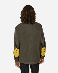 KAPITAL 10G ECO Knit Elbow Coneybowy Short Cardigan Grey Combining comfort with the eccentric design typical of the Kapital catalog, each piece becomes a unique staple. Crafted from acrylic and wool, the oversized short cardigan features a front button closure and knitted smiley at elbows. - 90% Acrylic, 10% Wool - Overiszed Fit - Button Closure - Knitted Smiley Logo at Elbows - Ribbed Cuffs and Hem - Made in Japan - Style Code: EK-1591KN GRAY SIZE & FIT Measures (Size 3): 62cm Shoulders, 68cm Chest, 62cm Sleeve, 66cm Length, 56cm Hem. Model is 6ft 1in/1.84m with 32"/83cm chest and wears size 3.