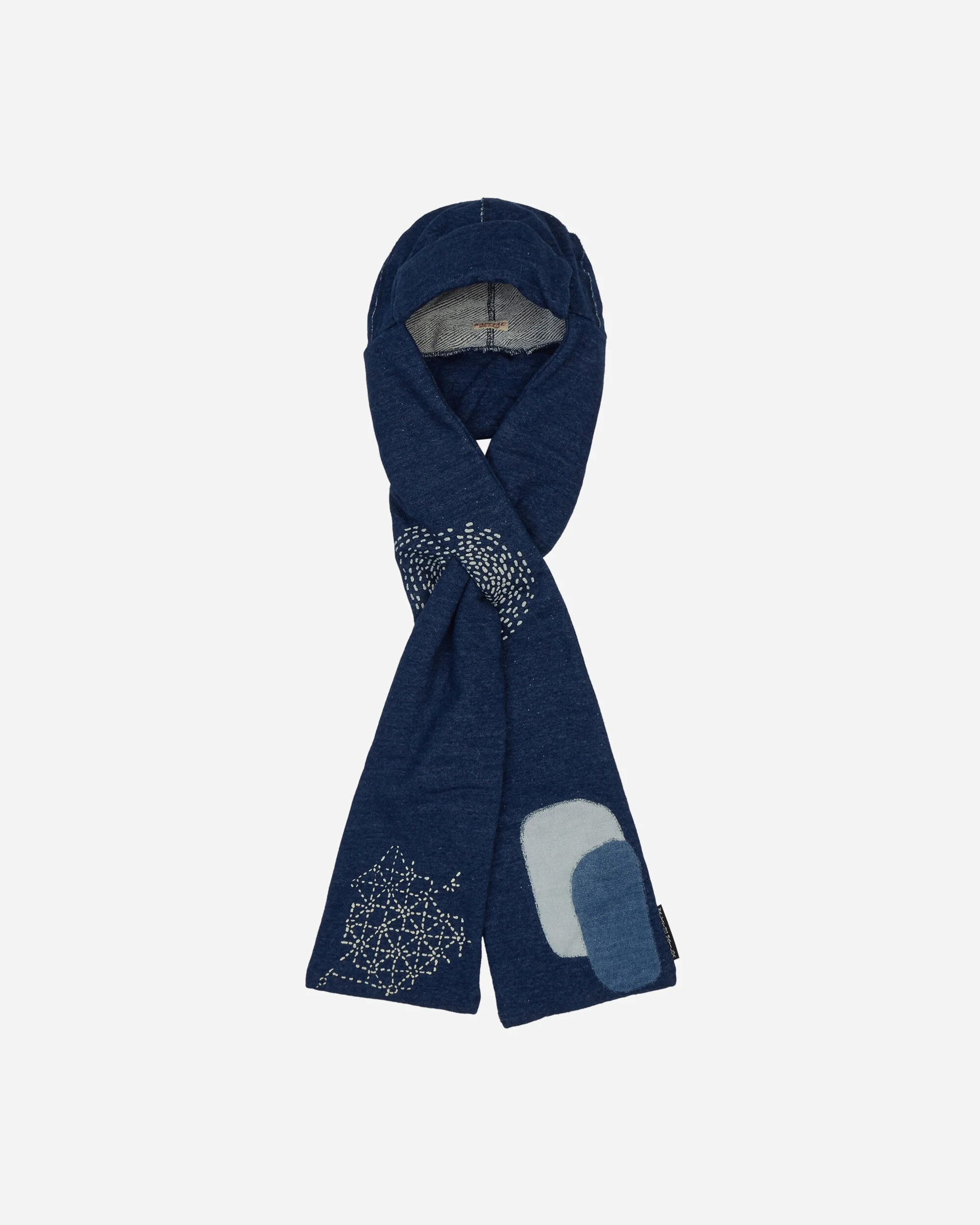 KAPITAL Indigo SWT Knit Nora Gale Cap Indigo From KAPITAL, this Aviator hat design with attached pull-through scarf for extra warmth features a classic nora pattern. - 100% Cotton - Fleece Fabric - Attached Pull-Through Scarf - Woven Logo Patch - Made in Japan - Style Code: K2311XH558 1