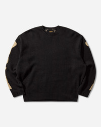 KAPITAL 5G Wool Bone Crewneck Sweater Black The Japanese brand reworks classic silhouettes, such as this cardigan, with an oversized fit for greater comfort and versatility. Crafted from traditional wool yarns, this knit features intarsia-knitted bone motifs around the back and sleeves. - 100% Wool - Oversized Fit - Ribbed Crewneck, Cuffs and Hem - Thumb Holes at Cuffs - Intarsia-Knitted Bones Motif - Made in Japan - Style Code: EK-1537KN BLACK