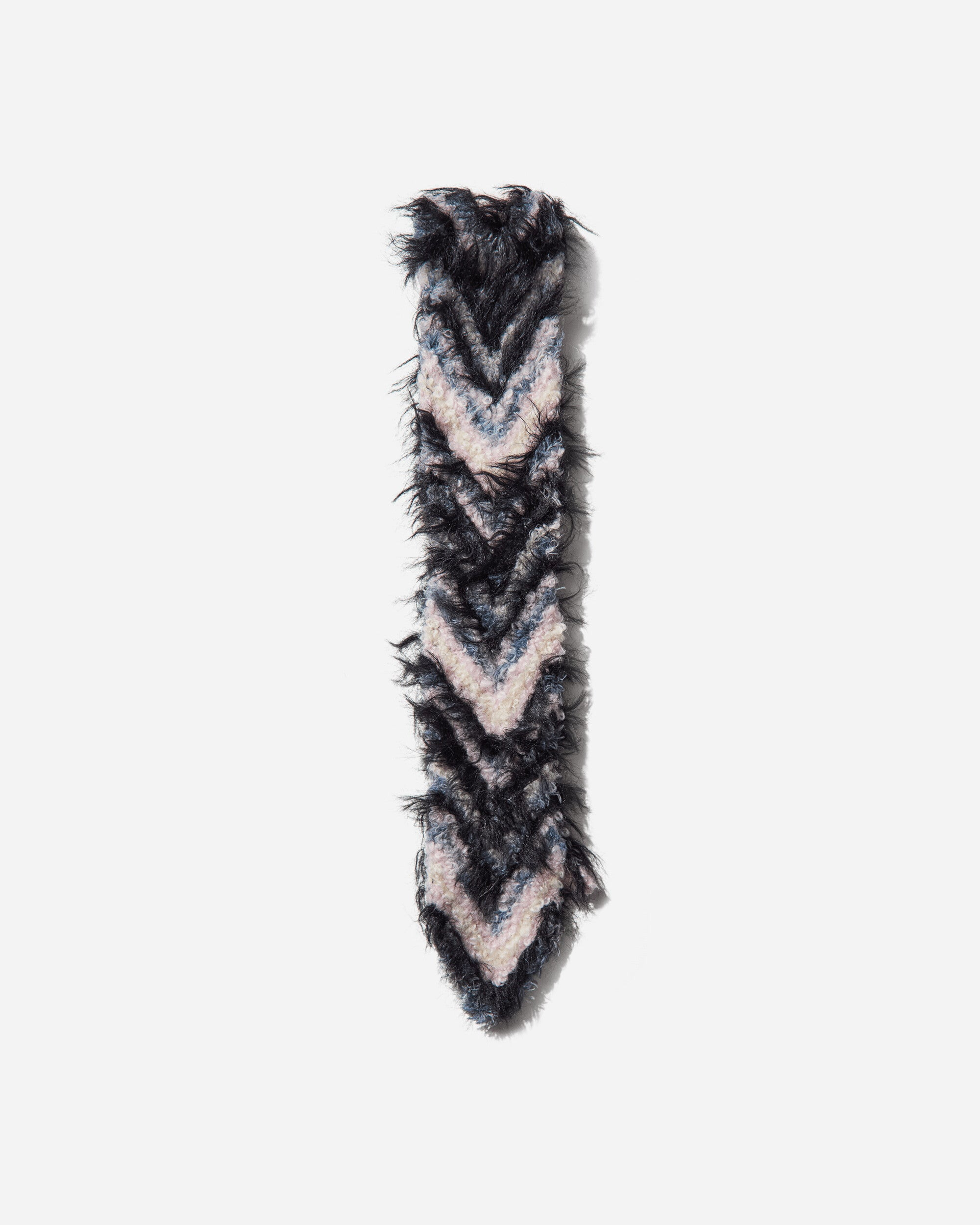 Kiko Kostadinov Chevron Knit Scarf Sky Blue Regular wide scarf with textured stripe pattern and fringing. Knitted from alpaca and nylon yarn. - 90% Mohair, 10% Nylon - Textured Stripe Pattern - Fringe Detailing - Made in Italy - Style Code: KKWAW25KN14 137