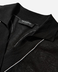 Kiko Kostadinov Woman Kreiner Knit Polo Black Lightweight cotton blend knits build sheer textures and play with transparencies. The short sleeved style imparts classic knitwear details, displaced or exaggerated. The polo style front is collaged with a racer back allowing for multi wear. Ribbed finishes on cuffs and hem there are bold contrast crochet effect detailing outlines functional and mimicked jetted, welt and flap pocket constructions. - 80% Cotton, 20% Nylon - Oversized Fit - Sheer Fabric - Oversized Collar - Pockets at Front - Contrast Crochet Detailing - Racer Back - Ribbed Cuffs and Hem - Style Code: KKWSS26KN11-111 001