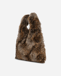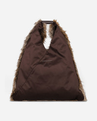 MM6 Maison Margiela Faux Fur Japanese Bag Brown MM6’s iconic Japanese bag takes on a new texture in plush faux fur, softening its signature origami-inspired form. The bold triangular silhouette remains intact, offering a tactile contrast between structure and fluidity – an everyday statement that reimagines the Maison’s most emblematic accessory. - 80% Acrylic 20% Polyester / 100% Calf Leather - Lining: 100% Cotton - Leather Top Handle - Debossed Logo - White Stitch Line at Back - Made in Italy - Style Code: S54WD0039 H9076 SIZE & FIT 55cm Height, 50cm Width, 2cm Depth.
