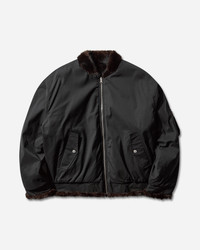 MM6 Maison Margiela Reversible Bomber Jacket Brown A reimagining of the classic bomber, this jacket contrasts matte fabric with tactile shearling-style trim. The relaxed, padded silhouette channels flightwear references with a softened edge, while utility pockets retain its functional roots. At the back, MM6’s signature white stitch line affirms its identity. - 100% Polyester - Relaxed Fit - Reversible - Faux Shearling Trim - Zip Closure - Utility Zip Pocket at Sleeve - Two Side Pockets - Ribbed Cuffs and Hem - White Stitch Line at Back - Made in Italy - Style Code: SH2AM0044 962