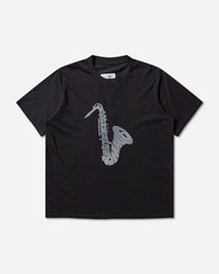 MM6 Maison Margiela Saxophone T-Shirt Black This graphic T-shirt strikes a jazz-influenced note, fusing the energy of Miles Davis with MM6’s irreverent design approach. A saxophone motif, formed from stacked Maison lettering, lends the look a playful edge that recalls the feel of vintage music tees. Finished with the MM6 white stitch line at the back. - 100% Cotton - Relaxed Fit - Ribbed Collar - Saxophone Print at Front - White Stitch Line at Back - Made in Italy - Style Code: SH2GC0032 900