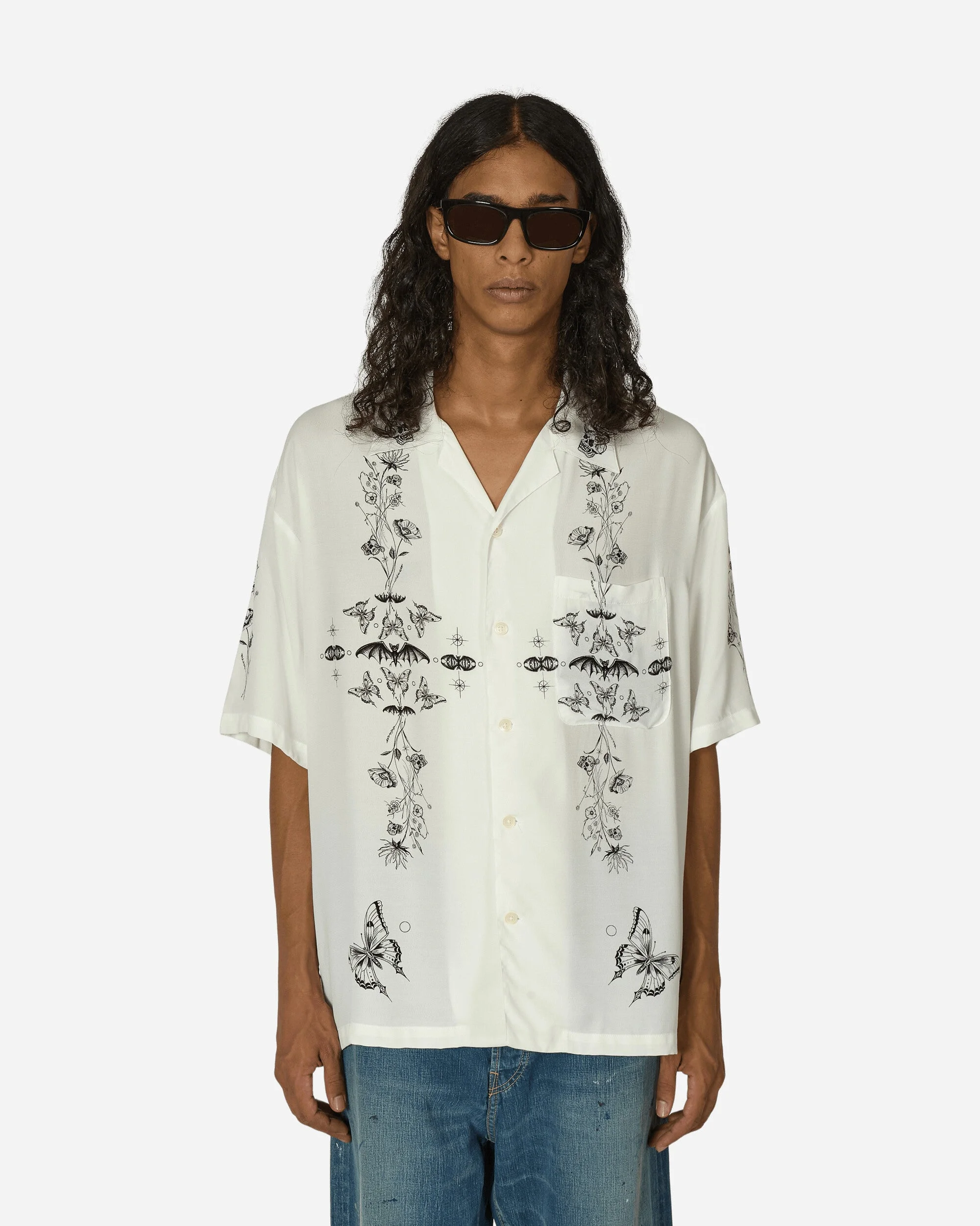 Neighborhood x Dr. Woo Hawaiian Shirt White NEIGHBORHOOD linked up with world-renowned tattoo artist Dr. Woo for their fourth collaboration. Hawaiian shirt with intricate linear graphics by tattoo artist DR.WOO. Made of rayon fabric with a grainy, classic texture. Features a patch pocket on the left chest and a brand label attached to the side seam. - 100% Rayon - Relaxed Fit - Cuban Collar - Button Closure - Chest Pocket - Graphic by Dr. Woo - Made in Japan - Style Code: 241TSDWN-SHM01S WH SIZE & FIT Model is 6ft 2in/1.86m with 33"/85cm chest and wears size L.