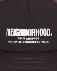 Neighborhood Mesh Cap-1 Brown Mesh cap with a rubber printed logo on the front. The material is a combination of polyester-rayon cloth and nylon mesh. Tongue is made of Field Sensor, which has excellent water absorption and quick-drying material. Snap-type adjuster at the rear. - 65% Polyester, 35% Rayon - Five-Panel Construction - Logo Printed at Front - Mesh Back Panel - Adjustable Strap - Style Code: 251YGNH-HT06 BR
