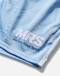 Nike x Martine Rose Football Shorts Psychic Blue These heavyweight, sweat-wicking shorts are made with premium jacquard-knit fabric, featuring an all-over Nike x Martine Rose Swoosh globe design. The standard fit feels relaxed through the seat and thighs for casual comfort. Zip pockets, 'MRS' branding and an authentic jock tag elevate the finish. - 100% Polyester - Jacquard Knit Fabric - Regular Fit - Elasticated Drawstring Waistband - Two Side Pockets - Woven Logo Patch - One Back Pocket - Style Code: HM9025-422