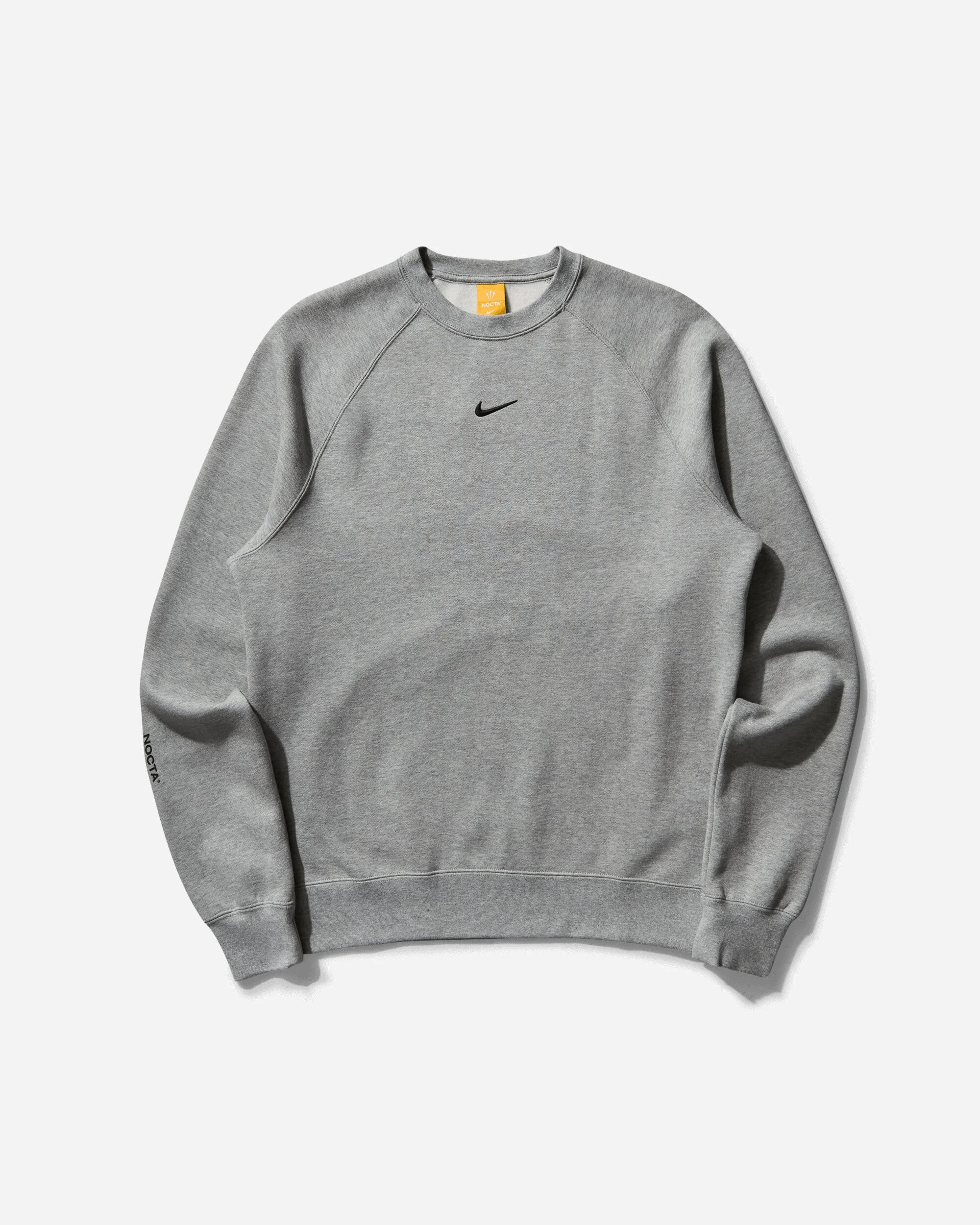 Nike x NOCTA Fleece Crewneck Sweatshirt Dark Grey Heather The union between Nike and rapper Drake led to the creation of NOCTA, the streetwear sub-label as a direct reference to Drake's “nocturnal creative process” and "characterized by the type who is on the road all day, all night." Every collection put on some classic staples, to guarantee comfort and minimal coolness. - 82% Cotton, 18% Polyester - Relaxed Fit - Raglan Sleeve - Graphic Printed at Front, Back and Sleeve - Ribbed Collar, Cuffs and Hem - Style Code: FN8160-063