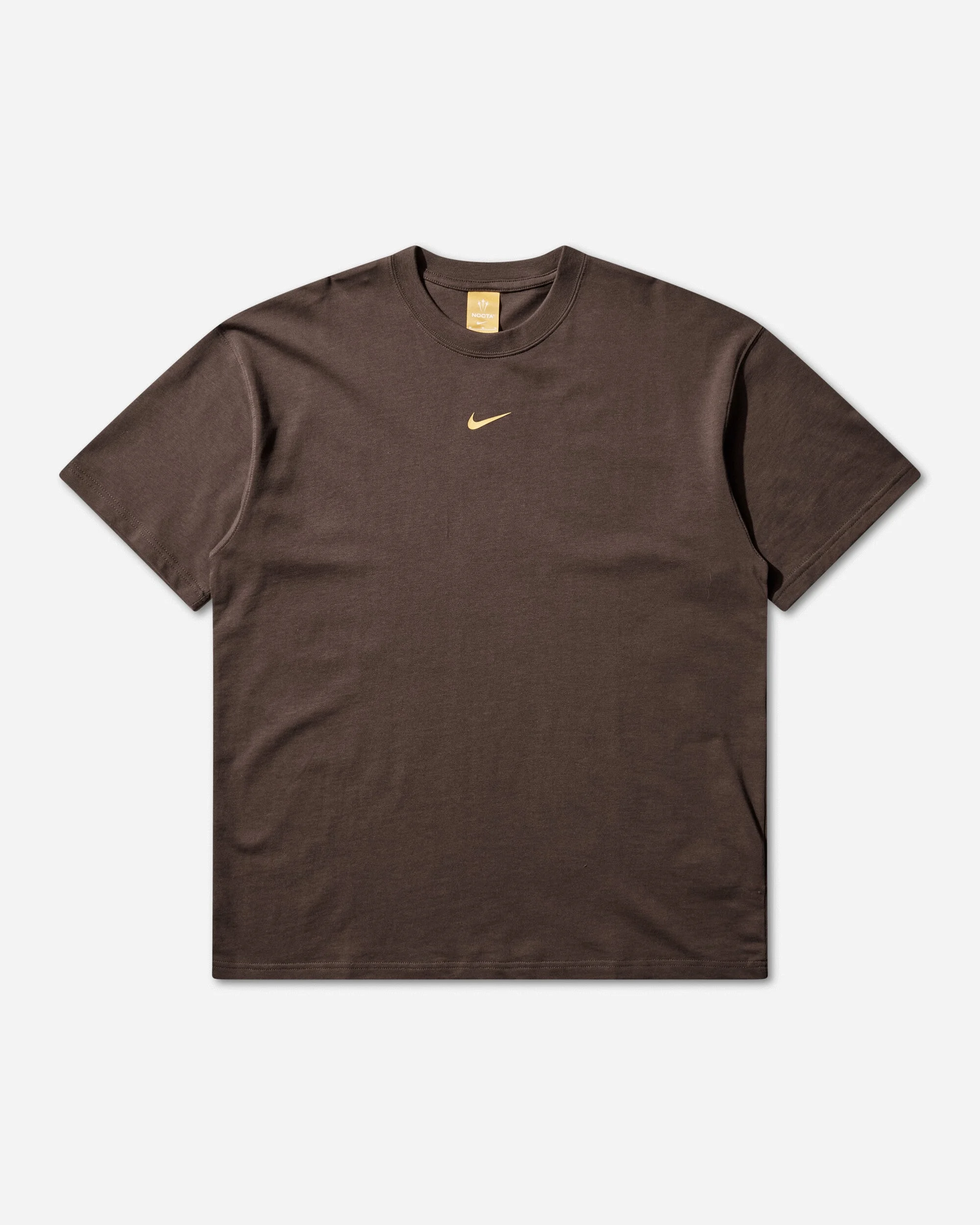Nike NOCTA T-Shirt Baroque Brown / Yellow Ochre The union between Nike and rapper Drake led to the creation of NOCTA, the streetwear sub-label as a direct reference to Drake's “nocturnal creative process” and "characterized by the type who is on the road all day, all night." Every collection put on some classic staples, to guarantee comfort and minimal coolness. - 100% Cotton - Regular Fit - Ribbed Crewneck - Graphic Printed at Front and Back - Style Code: IB5673-237