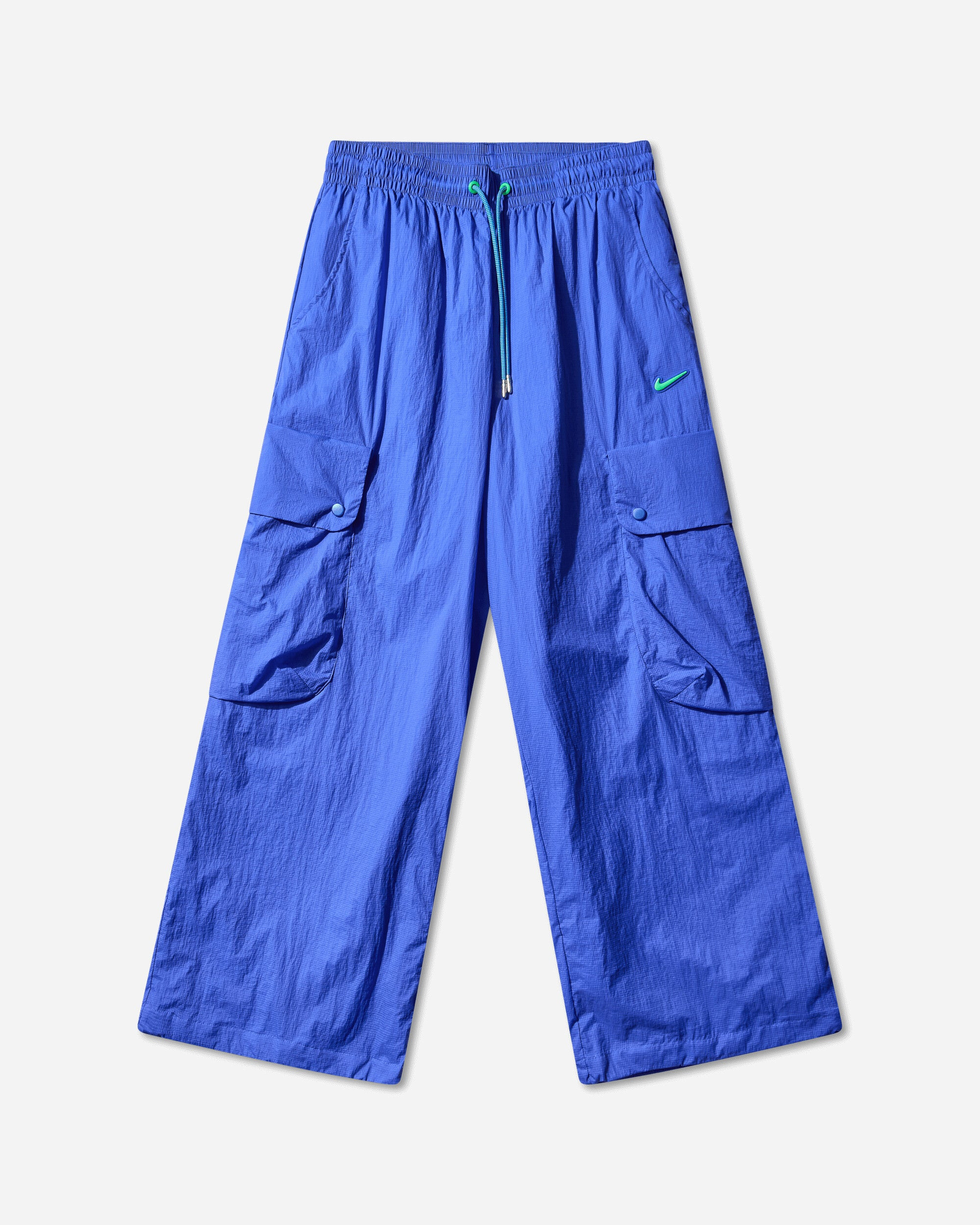 Nike Project F.R.O.G. Transparent Cargo Pants Hyper Royal These expressive oversized cargos are crafted from a lightweight, semi-transparent Ripstop that repels water. Elastic bungees offer flexibility with styling around your shoes. - 100% Nylon - Semi Transparent Ripstop Fabric - Water Repellent - Elasticated Drawstring Waistband - One Zip Back Pocket - Two Front Pockets - Cargo Pockets at Side - Silicone Branding - Style Code: HV0907-405