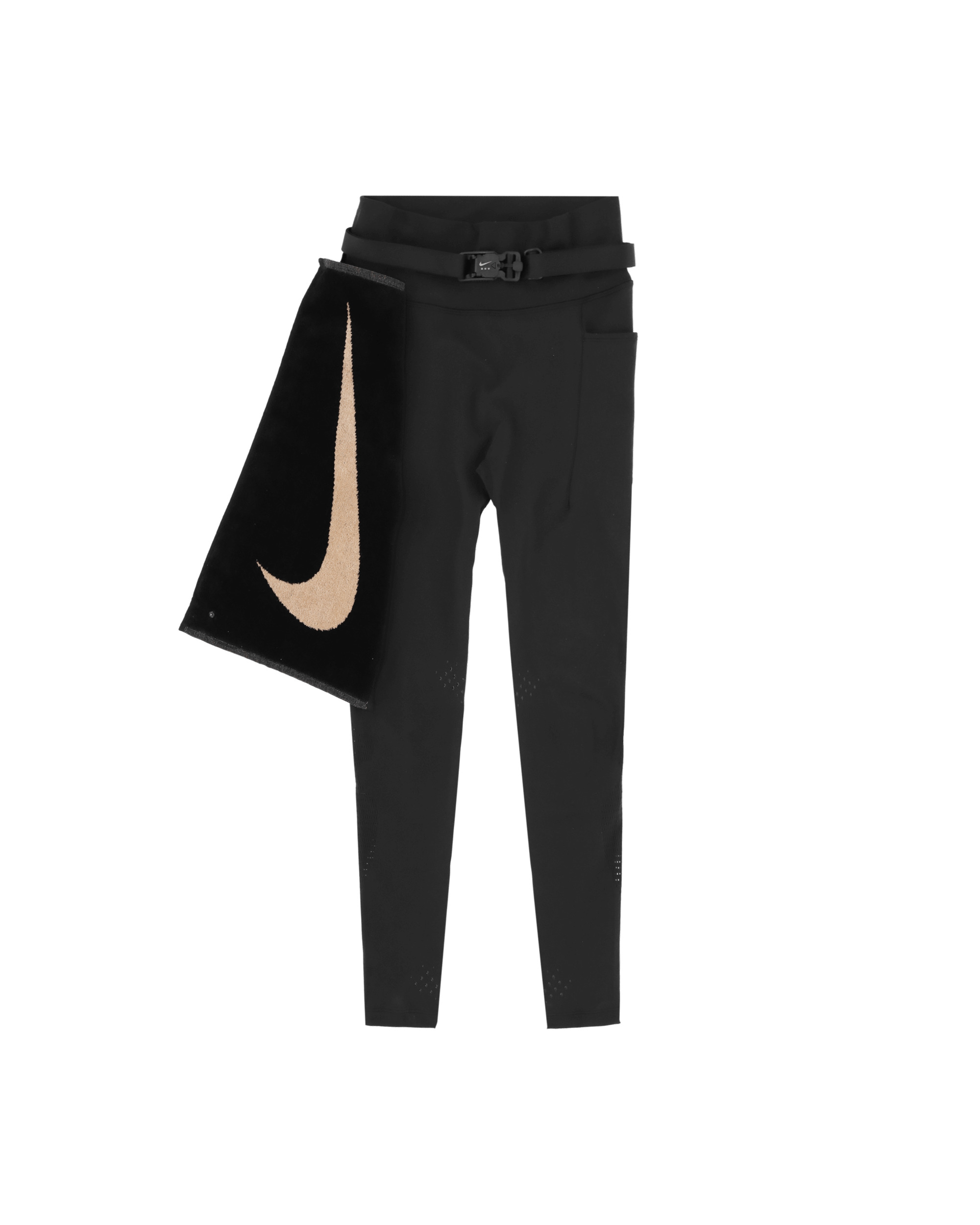 Nike Special Project x MMW Tights Black - 83% Nylon, 17% Spandex - Detachable Buckle Belt and Towel - One Side Pocket - Mesh Detailing at Back - Printed Dual-Branding - Style Code: DD9427-010
