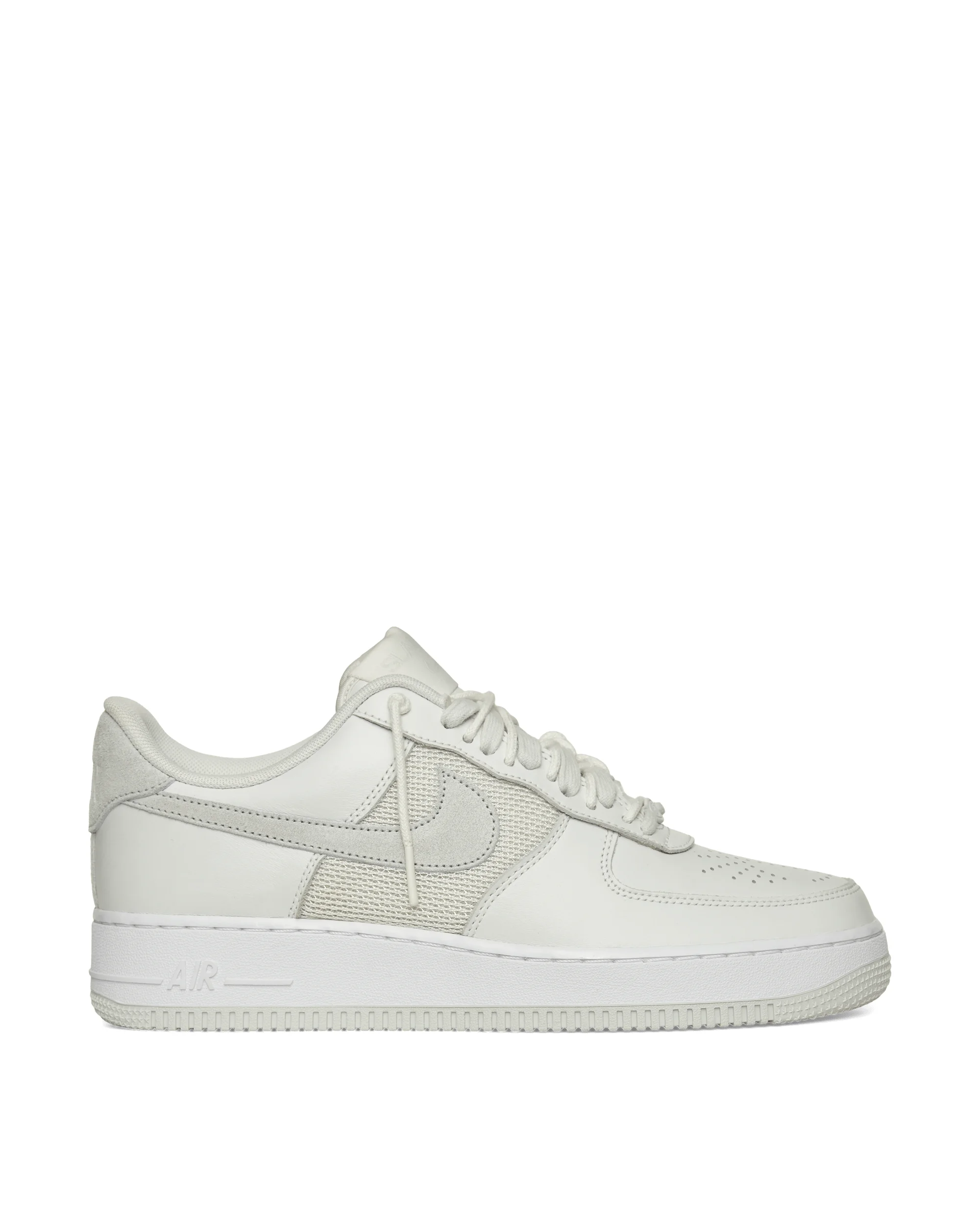 Nike x Slam Jam Air Force 1 Sneakers Summit White / Off White Partnering with Slam Jam, this crafted take on the AF-1 has the Italian streetwear powerhouse’s seal of approval (it’s stamped right into the perforations pattern on the toe). Soft suede accents add texture to the smooth leather and airy mesh, while extra eyelets and laces let you mix up your style. And that upside down “NIKE AIR” hones your look to irreverent perfection. - Premium Leather Upper - Mesh and Suede Overlays - Perforated Toe Box - Air Cushioning - Rubber Outsole - Style Code: DX5590-100