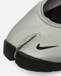 Nike Air Rift Leather Sandals Metallic Silver / Sail / Black Decked out in Metallic Silver, the Air Rift features a smooth, full-grain leather upper with hook-and-loop straps for easy adjusting. The split-toe design brings stability and comfort to every step while adding a playful aesthetic to your look. - Leather Upper - Split-Toe Design - Heel Straps - Foam Midsole - Perforated Footbed - Zoom Air Unit - Rubber Outsole - Style Code: HM5737-003