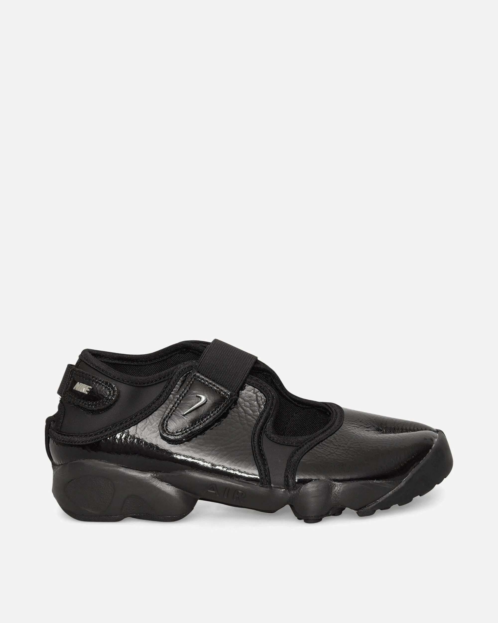 Nike Air Rift Sandals Black / Metallic Silver Decked out in black, the Air Rift features a smooth, patent leather upper with hook-and-loop straps for easy adjusting. The split-toe design brings stability and comfort to every step while adding a playful aesthetic to your look. - Patent Leather Upper - Split-Toe Design - Reflective Details - Heel Straps - Foam Midsole - Perforated Footbed - Zoom Air Unit - Rubber Outsole - Style Code: IB8954-001