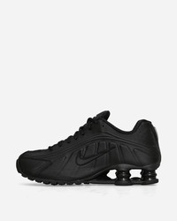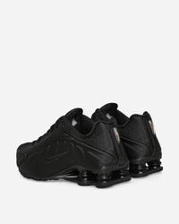 Nike Shox R4 Sneakers Black / Black / Max Orange Making its audacious debut in 2000, the Shox R4 shattered the mould of traditional pavement pounders. The silky smooth synthetic upper takes design cues from spacesuits and astronaut gear, with fluid ripples, laser perforations and a stance built to help propel forward motion. Four compressive columns lift the heel, offering a stable structure and bona fide bounce. - Synthetic Upper - Leather Overlays - Pillared Midsole - Rubber Outsole - Style Code: AR3565-004