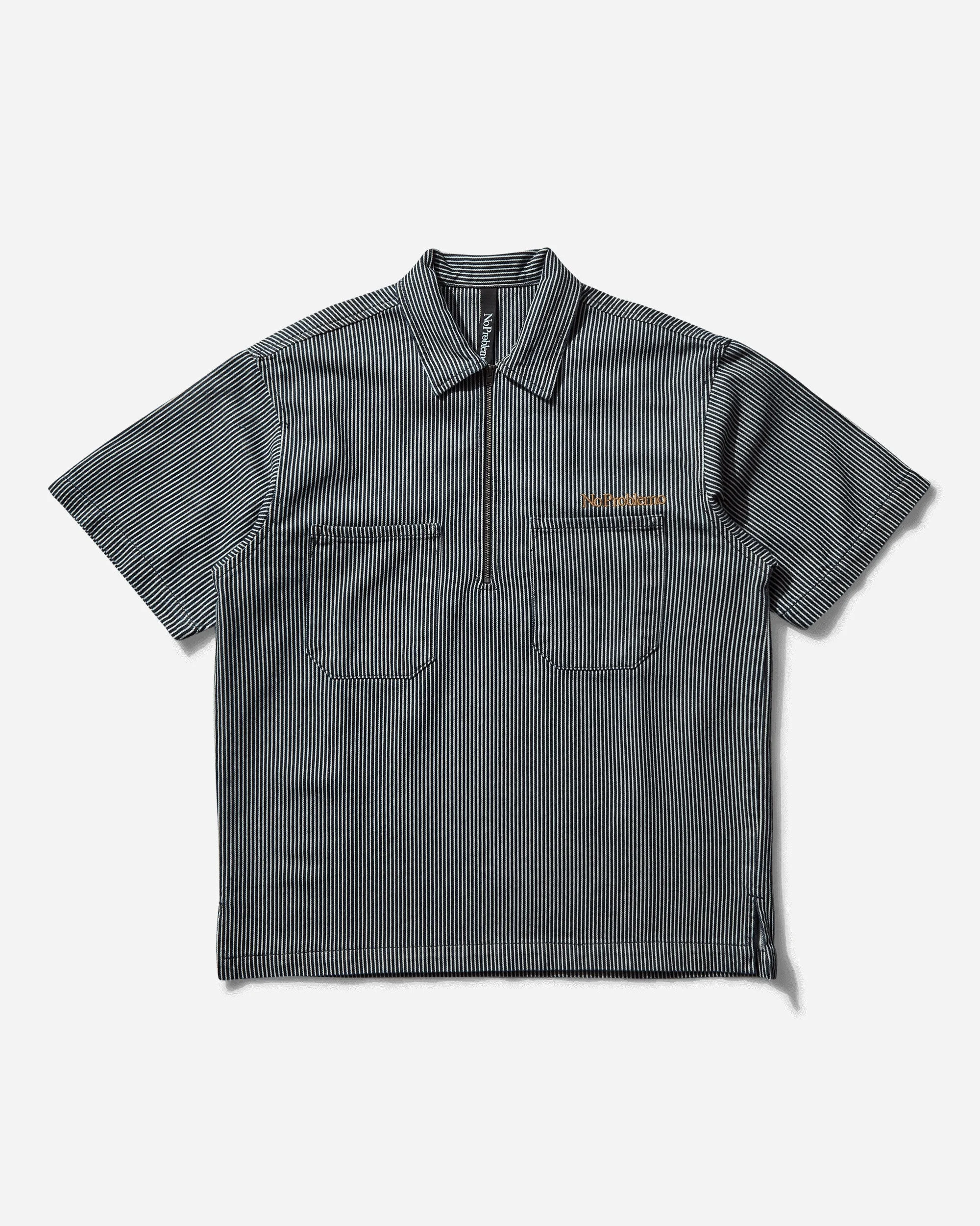 No Problemo Mini Problemo Shortsleeve Work Shirt Denim Blue No Problemo offers a premium and unisex uniform of workwear, graphic styles and contemporary streetwear staples. Brought to you by Aries, the brand creates trusted fits across genderless silhouettes with attention to detail, quality of production and finish, all made possible through an established and transparent supply chain. - 100% Cotton - Striped Pattern - Classic Collar - Half-Zip Closure - Embroidered Logo at Front - Two Chest Pockets - Style Code: NP4011303 BLU