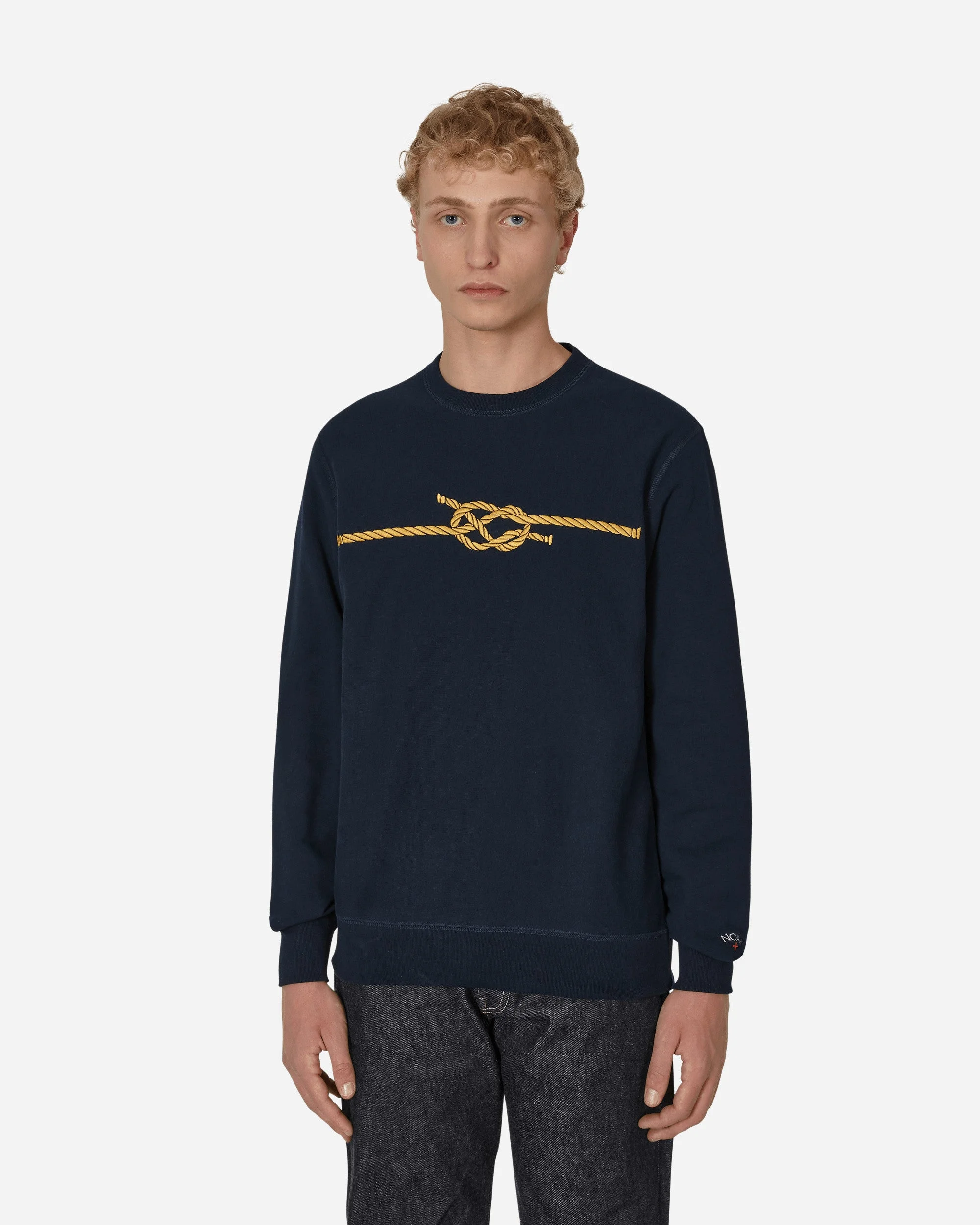 Noah Knot Crewneck Sweatshirt Navy - 100% Cotton - Regular Fit - Ribbed Crewneck, Cuffs and Hem - Embroidered Knot at Front - Style Code: SS070FW22 NVY SIZE & FIT Model is 6ft 1in/1.86m with 32"/90cm chest and wears size M. Measures (Size M): 46cm Shoulders, 56cm Chest, 65cm Sleeve, 68cm Length, 48cm Hem.