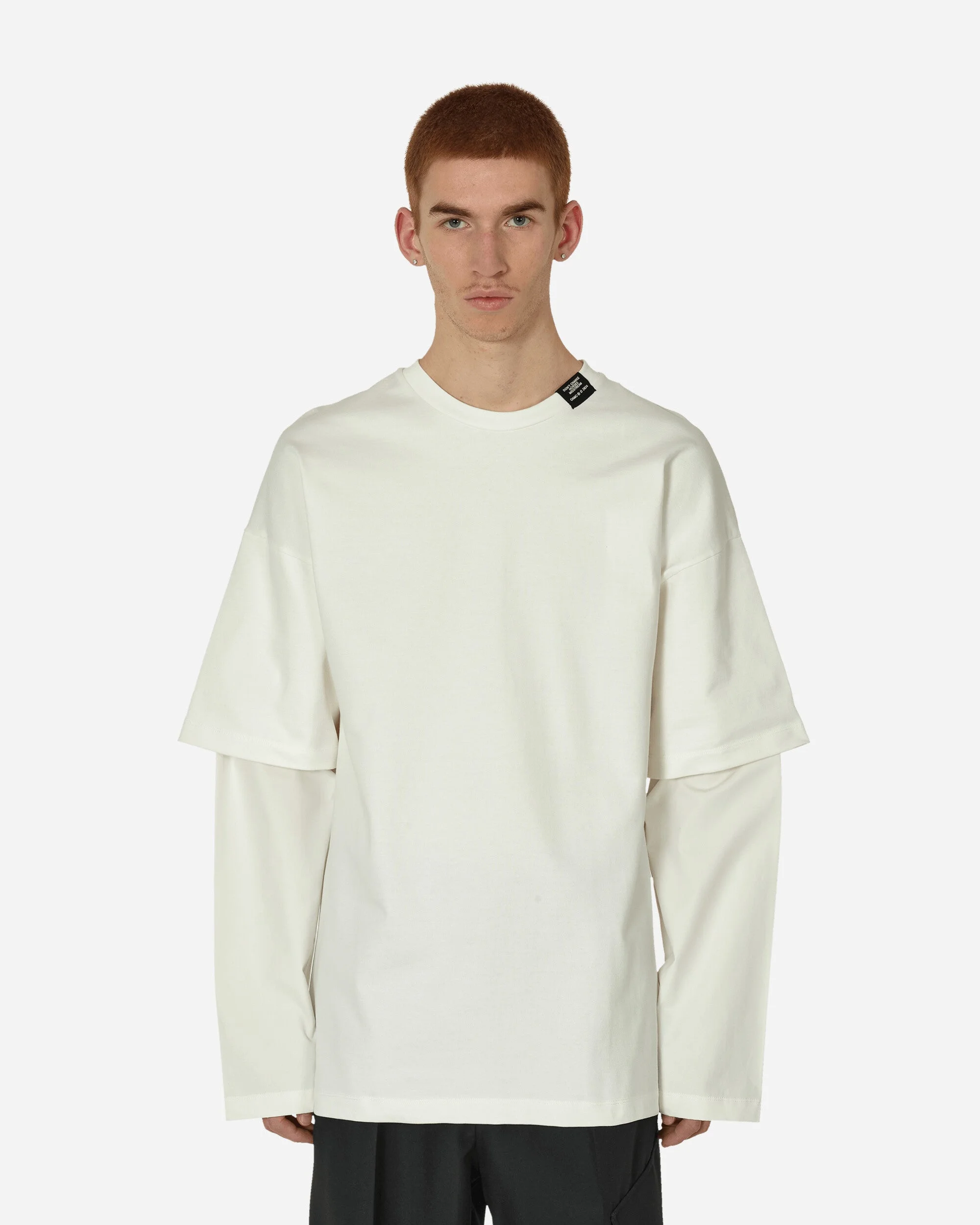 OAMC Combo T-Shirt Off White OAMC embraces the perfect urban zeitgeist with menswear collections deconstructed as minimalist modern uniforms. The use of first quality materials, and the production of one-of-a-kind garments, transformed OAMC in a utilitarian classic example, thanks to the vision of Luke Meier. - 100% Organic Cotton - Oversized Fit - Ribbed Collar with Woven Logo Patch - Double Sleeves - Style Code: 24E28OAJ11 101 SIZE & FIT Model is 6ft 1in/1.84m with 35"/90cm chest and wears size M. Measures (Size M): 65cm Shoulders, 57cm Chest, 62cm Sleeve, 77cm Length, 56cm Hem.