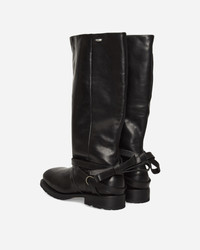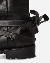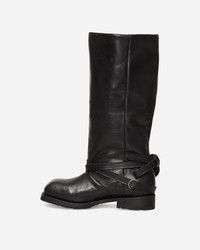 Our Legacy High Engine Boots Black Tensile Cattle Hide Produced in Italian leather with a rubbery touch and soft shine, this boot features a Vibram rubber sole, leather midsole, and vegetable tanning process. The mid calf-level shaft is inspired by extreme cold weather boots, with a flexible construction that allows for natural creasing around the calf. The boot includes strap details, metal Our Legacy rivet, and a leather string around the ankle for added effect. - Italian Leather Upper - Vegetable Tanned - Soft Shine Finish - Strap Details - Mid Calf-Level Shaft - Leather Midsole - Vibram Rubber Sole - Style Code: A4257HB