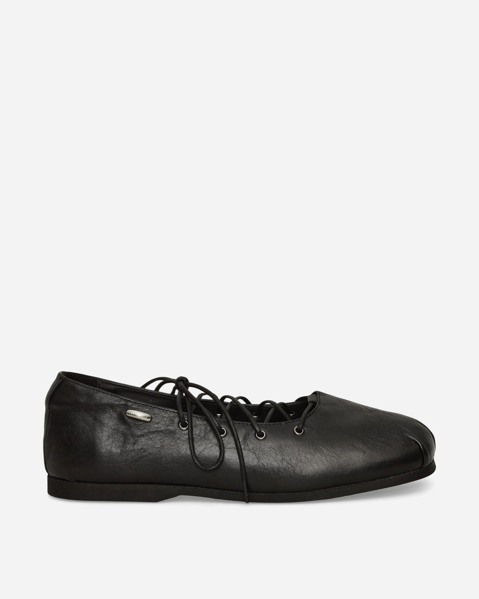 Our Legacy Laced Slip In Shoes Malleable Black Bull Hide Produced in an Italian bull leather, the Laced Slip In draws inspiration from the ballet pump and features a pleated square toe, open lacing, a Vibram sole and a metal Our Legacy rivet. - Italian Bull Leather Upper - Pleated Square Toe - Open Lacing - Metal Our Legacy Rivet - Vibram Sole - Style Code: A4247LMB