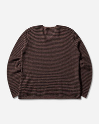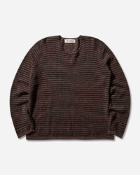 Our Legacy Rigid Popover Sweater Dirt Stripe Fuzzy Alpaca Produced in Italian yarn combining alpaca, RWS wool, recycled polyamide and polyamide in a striped jersey knit, the men's Rigid Popover has a relaxed fit and features a fashioned neckline with rolling edge, French shoulders, reverse stitch detail at side seams, and rolling cuffs and hem. - 55% Alpaca, 15% RWS Wool, 22% Recycled Polyamide, 8% Polyamide - Relaxed Fit - Striped Pattern - Wide Neckline - French Shoulders - Reverse Stitch Detail at Side Seams - Rolling Cuffs and Hem - Style Code: M4253RD