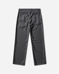 Our Legacy Slack Trouser Smoke Grey Produced in Italian virgin wool fabric, the men's Slack Trouser has a relaxed fit with a lower rise and features a hidden closure, pleats at the waist, pre-constructed waistband, and a slight bootcut silhouette. The trouser includes two side pockets, two back pockets, corozo buttons, YKK zip fly, and a refined cut through the thigh that creates a sharp feeling with the slightest bootcut from the knee down for the perfect leg opening. - 100% Virgin Wool - Low Rise - Corozo Buttons - Zip-Fly - Hidden Closure - Pre-Constructed Waistband - Two Side Pockets - Two Back Pockets - Style Code: M4254SS 001