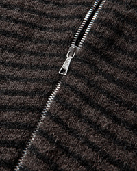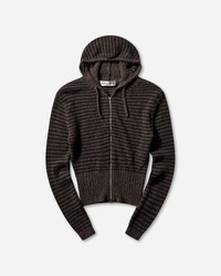Our Legacy Compact Hood Sweater Dirt Stripe Fuzzy Alpaca Produced in Italian yarn combining alpaca and RWS wool with recycled polyamide and polyamide, the women's Compact Hood has a slim fit and features a striped pattern, drawstring hood, Lampo two-way zip and enhanced ribbed hem. - 55% Alpaca, 15% RWS Wool, 22% Recycled Polyamide, 8% Polyamide - Slim Fit - Striped Pattern - Drawstring Hood - Two-Way Zip Closure - Enhanced Ribbed Hem - Style Code: W4253CD