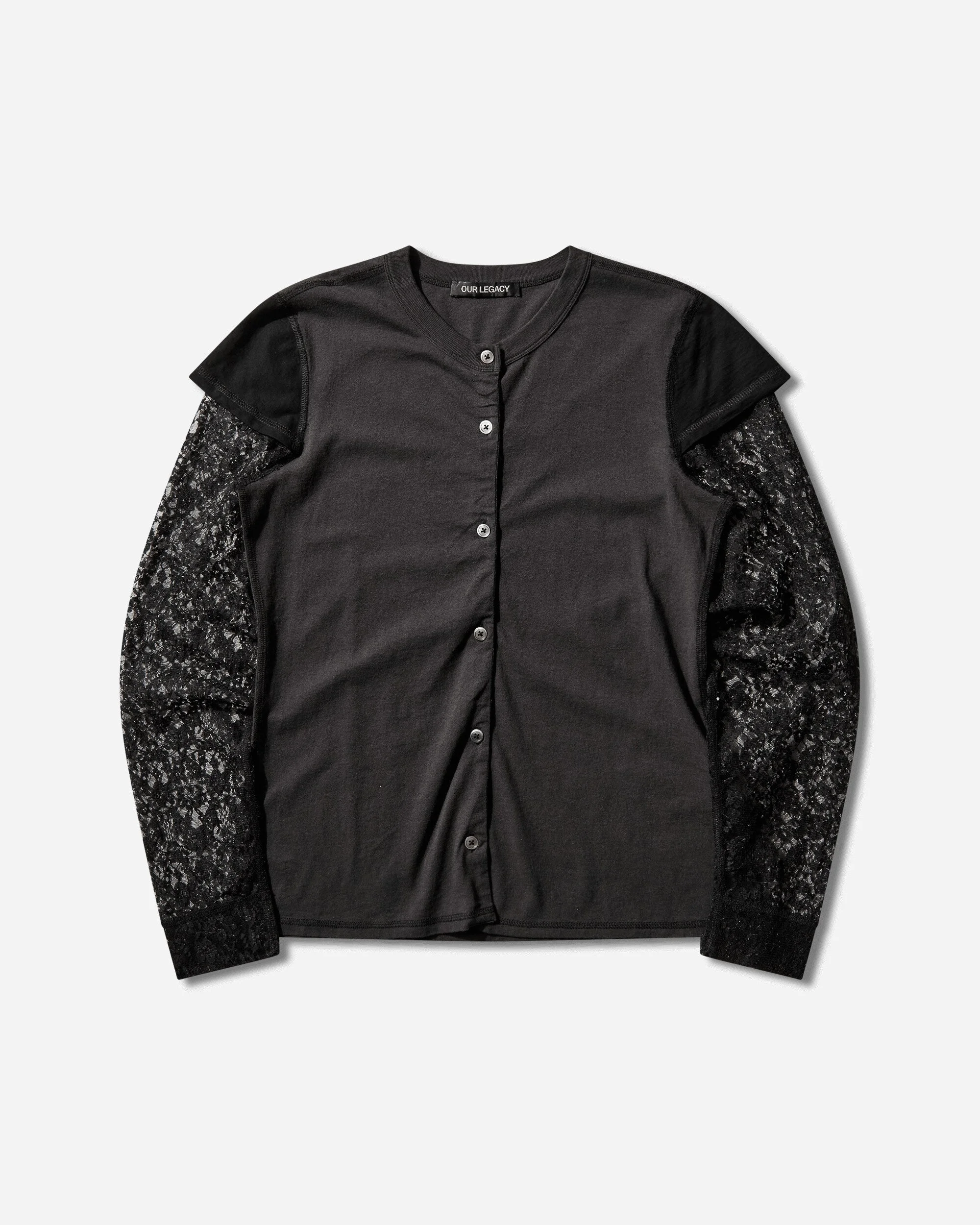 Our Legacy Heat Longsleeve Top Washed Black Legacy Jersey Produced in a Portuguese cotton jersey, the Heat Longsleeve has a slim fit and features a layered construction with a floral pattern, mother of pearl buttons, a ribbed collar and cuffs, and a straight hem, and is piece dyed for a lived-in washed black tone. - 100% Cotton - Slim Fit - Piece Dyed - Floral Pattern - Layered Construction - Ribbed Collar and Cuffs - Button Closure - Straight Hem - Style Code: W2266HW