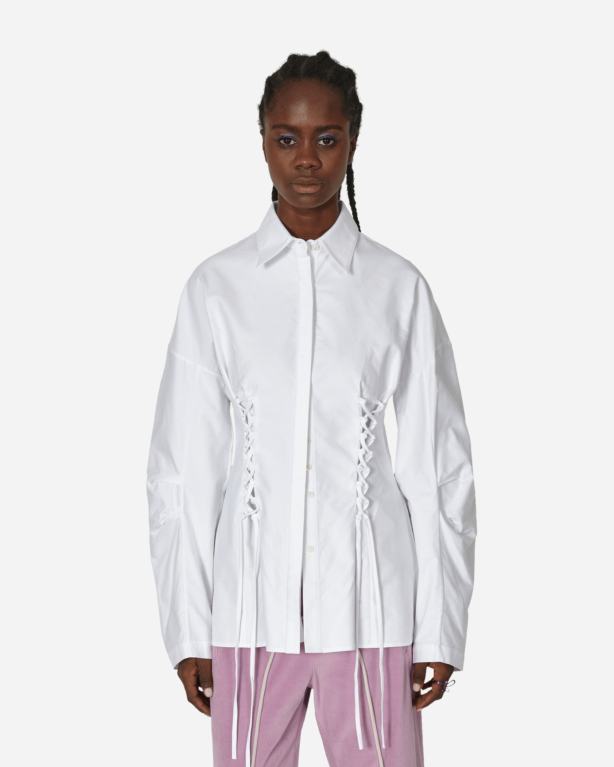 PRISCAVera Oxford Laced Button Down Shirt White The signature button-up by PRISCAVera is made in a new cotton oxford fabrication. The shirt is cut to a new sculptural silhouette, with dual lace up panels down the front to shape the waist. - 100% Cotton - Slim Fit - Point Collar - Concealed Mother-of-Pearl Button Closure - Pleated Cocoon Sleeves - Lace-Up Front Panels - Made in New York City - Style Code: 001194-176 WH SIZE & FIT Measures (Size S) 60cm Shoulders, 44cm Chest, 55cm Sleeve, 73cm Length, 55cm Hem. Model is 5ft 8in/1.77m with 31"/79cm chest and wears size S.